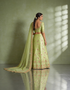 This lime green silk satin lehenga features a smooth, lustrous finish highlighted by delicate embroidery that adds graceful charm. Designed in a semi-stitched silhouette, it offers elegant structure and comfort, making it ideal for festive celebrations, pre-wedding events, and joyful wedding occasions.