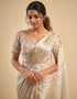 Majree Champagne Armani Satin Silk Rainbow Stone Saree