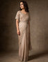 Majree Champagne Gold Sequin Embroidered One Minute Saree - Default Title