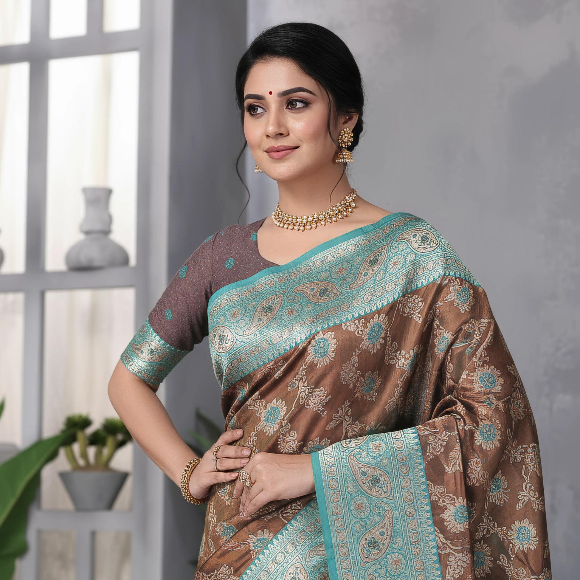 Refined brandy-toned silk drape with unmatched softness and classy traditional appeal.