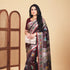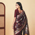 Captivating wine-colored satin saree with meenakari artistry, blending charm and sophistication.