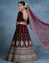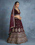 Maroon & Antique Gold Velvet Bridal Lehenga (Semi-Stitched)