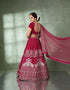 This rose pink silk velvet bridal lehenga is adorned with intricate embroidery that highlights its rich texture and romantic elegance. Designed in a semi-stitched silhouette, it offers a graceful fit and timeless appeal, making it a perfect choice for refined bridal celebrations and wedding ceremonies.