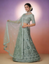 This seafoam green organza lehenga features a soft, airy drape highlighted with intricate embroidery and delicate floral detailing. Designed in a semi-stitched silhouette, it offers refined elegance and graceful movement, making it an ideal choice for festive occasions, receptions, and wedding celebrations.
